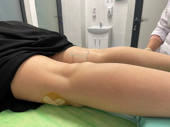- Эффективным методом лечения является пункция кисты Бейкера с эвакуацией содержимого и введением глюкокортикоидов (флостерон, дипроспан и др.). Манипуляция проводится строго под контролем УЗИ.