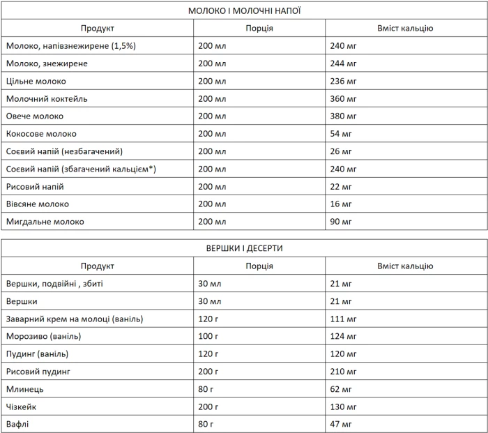 Для вашего удобства мы подготовили таблицу, одобренную авторитетной организацией International Osteoporosis Foundation. Она поможет узнать, какие продукты и в каком количестве содержат этот микроэлемент.